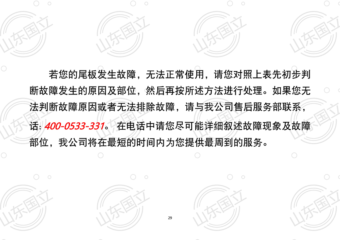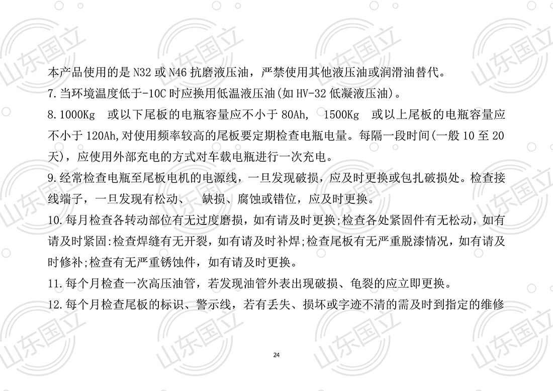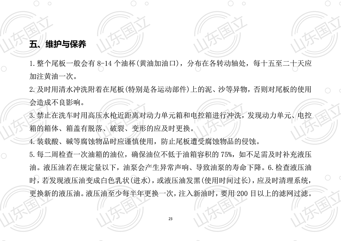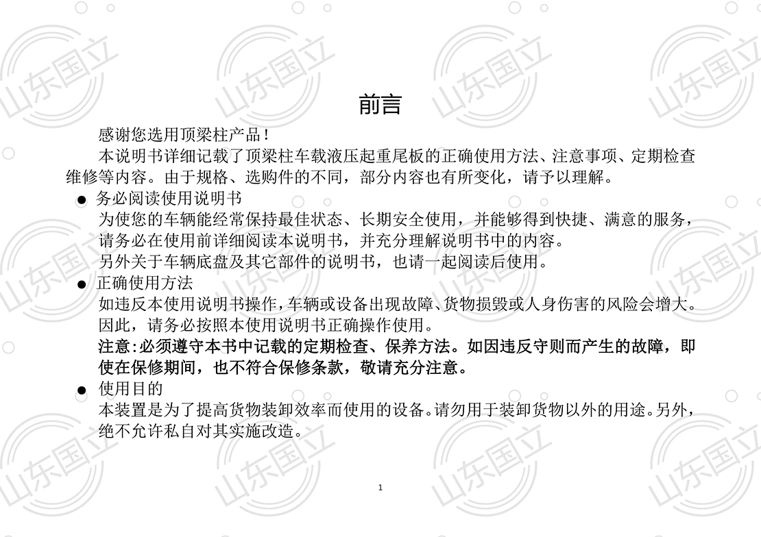 山東(dōng)國立液壓汽(qi)車尾闆【使用(yong)說明書】